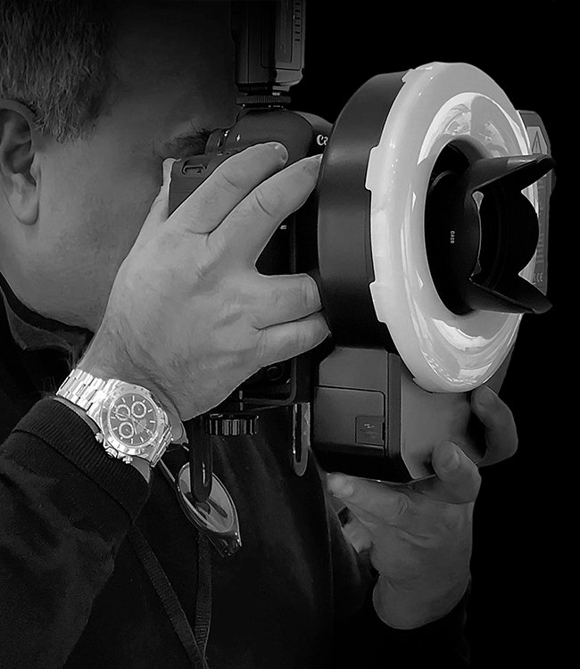 La formazione di Massimo Tessandori Bernini, a cavallo tra studi tecnici e umanistici, ha plasmato un approccio fotografico unico: sperimentale, ricercato e mai convenzionale. Ogni progetto è l’occasione per esplorare nuovi linguaggi visivi e combinare stili differenti, utilizzando tecniche di illuminazione spesso progettate e costruite su misura direttamente per il set. Post-produce personalmente ogni scatto, seguendo ogni fase con cura artigianale, perché per lui la fotografia è un processo creativo completo.